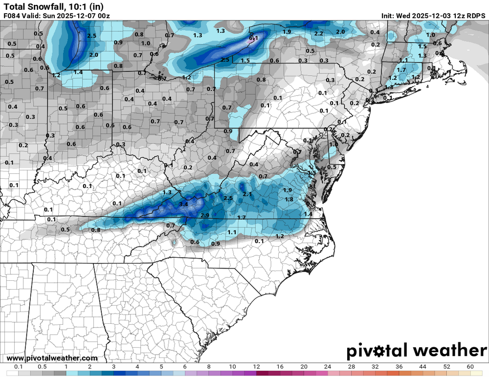 I think the RGEM depicts how this will play out with the totals south of the VA border being rate dependent (a dusting for many but locally 2")