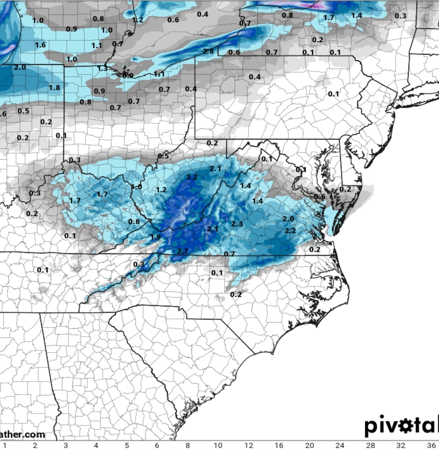 Most overnight and morning guidance still has light accumulations for Monday outside of the mountains