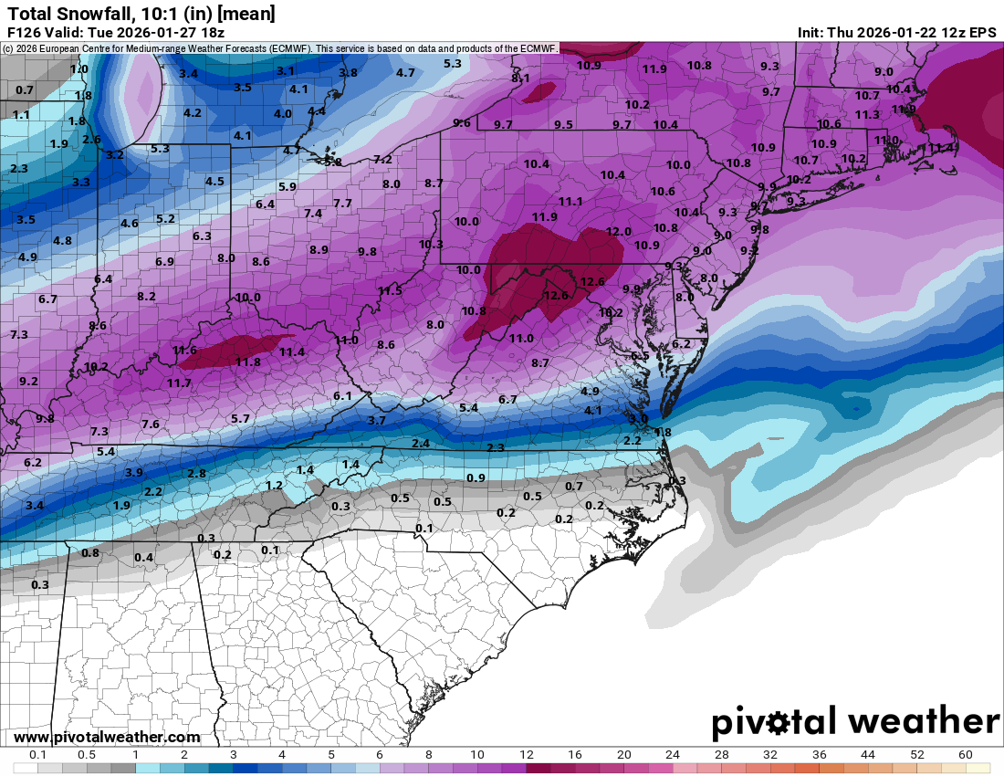 EPS did shift NW slightly overall, but there is some good under the hood. The 10 and 25% snowfall actually shifted southeast...the 10% snowfall is now 6" in DC, up from about 4.5" This would seem to indicate a floor of about 6". There are less disaster members with under 6". The 50% did drop from 11 to 9" and the 75% dropped from 14" to 11" so we are losing the upside potential as the jack zone is shifting further and further northwest the last several runs.