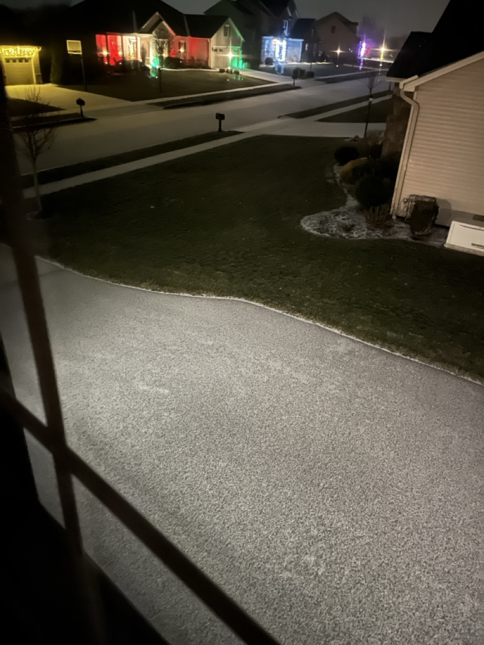 I don't know if it is pouring down freezing rain or sleet, but there is what my driveway looks like. Temp is 27.5 in West Hanover Township. -