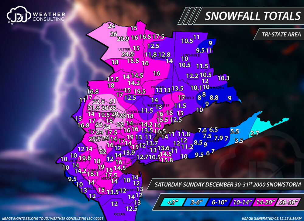 Today is the 25th anniversary of the Dec 30th, 2000 snowstorm that left a foot of snow in NYC and was the biggest storm since the blizzard of '96. I have a full radar animation and surface map loop up here on our site https://www.jdjweatherconsulting.com/dec-30-31-2000