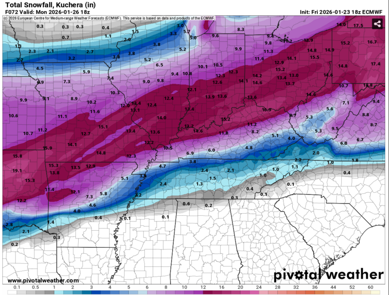 Euro AI has almost 2 inches of snow to downtown Knoxville now. Snow is shifting south across all modeling as we get closer to the event. Keep in mind, the Euro is a high resolution model, higher than the NAM for instance.