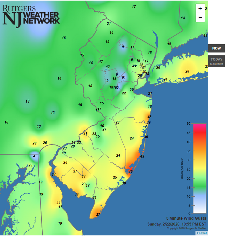 Took a walk around Asbury, 7-8 seems right. Hard to tell with the winds.