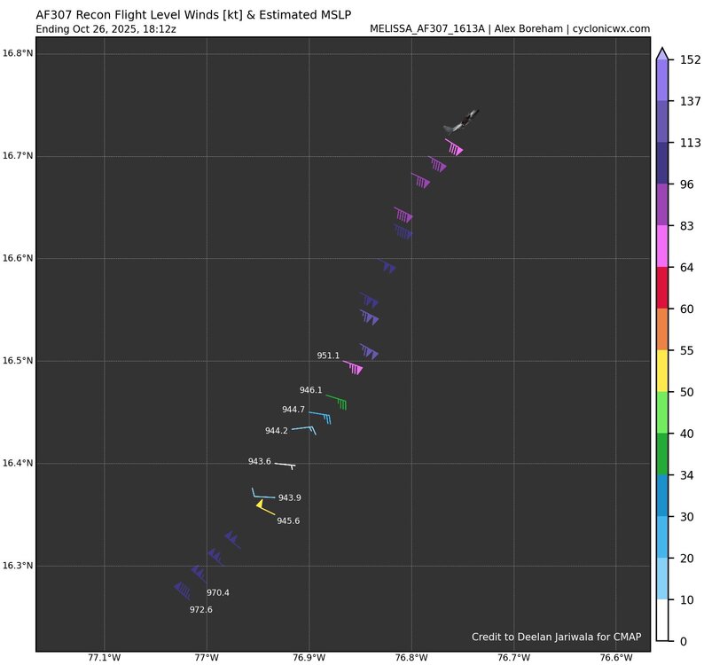 With Melissa being a small, compact storm it’s possible they haven’t found the “sweet spot” in the northeast quad. Ive seen in years past where recon sometimes miss the sweet spot with these small compact systems. Other thing to consider is Melissa is undergoing some sort of internal process. Not an ERC but there are many different types of internal processes that a cyclone can undergo.