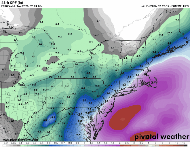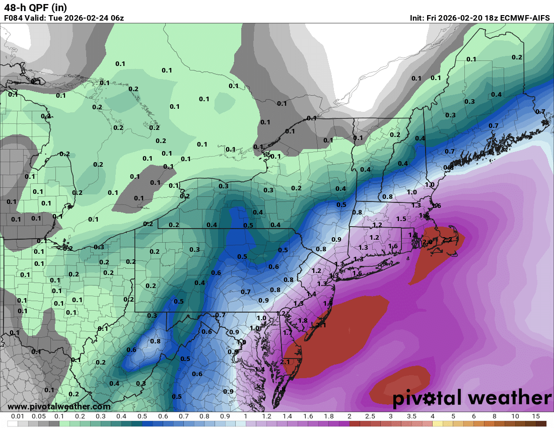 2. At some point there will be a sharp western edge on this one, but question is how far back west. There will be a crazy west to east gradient before you reach the coastal Delmarva, but could be a ton of precip between the edge and there. EC continues to be one of the eastern most solutions and it’s still upping the ante. Good sign.