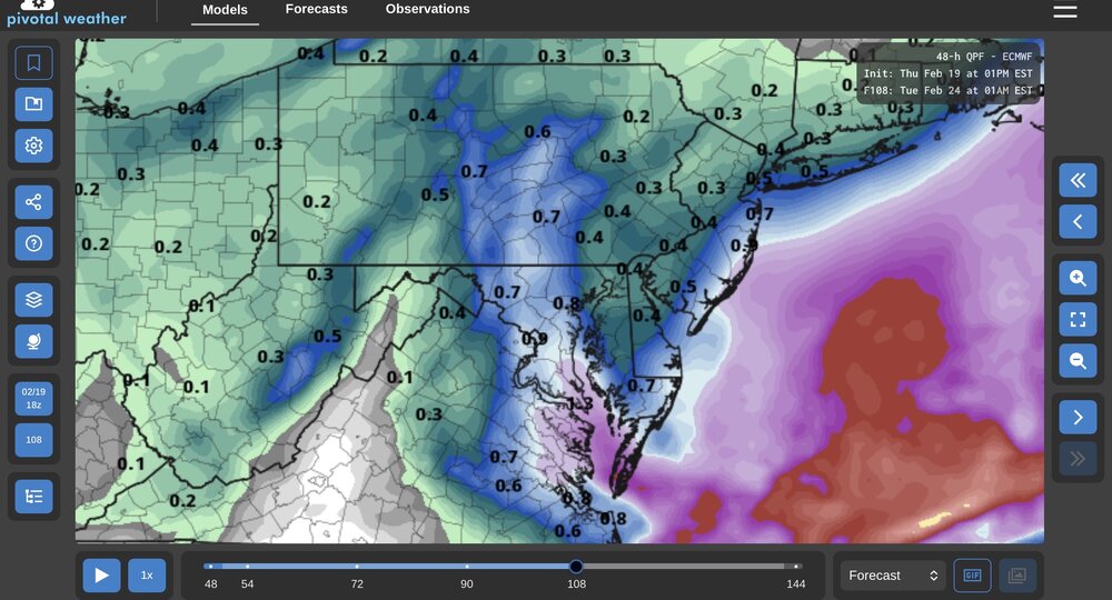 So what are we dealing with? GFS gives a nice dream-like coastal with heavy snow or Euro et al. show an IVT and our best hope is the IVT sets up right over us. Seems like some narrow goalposts. @CAPE @csnavywx any deeper thoughts?