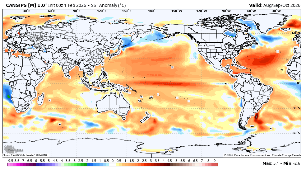 The WB Euro AIFS ensemble means are often the snowiest of the ens means due to having a true snowy bias likely resulting from an algorithm issue at WB although I suppose the issue could be internal at ECMWF (doubtful). This is most easily exhibited by the numerous times (every run) when individual members have blobs of heavy snow well out over the Gulf/Atlantic when temperatures are in the 60s-70s. Even Bastardi has noted this oddity about his company’s own Euro AIFS snow maps! These blobs even show up on all of the ens means although obviously lighter. Notice that no other end snow maps have this oddity. (This isn’t the first issue I’ve seen with WB maps by the way. For example, their Euro Weekly 2m maps are colder than the ecmwf in-house maps.) Example: member 46 (far right) getting heavy snow during hours 60-66 (6Z to 12Z on 1/22/26) on the 18Z 1/19/26 run 200 miles out into the Gulf while temperatures are above normal (70s)! While laughable, it is more importantly indicative of a significant snowy bias on its maps: Actually, this can be seen in subtropical regions throughout the globe. It even shows snow blobs now in Australia during their summer, for example! -