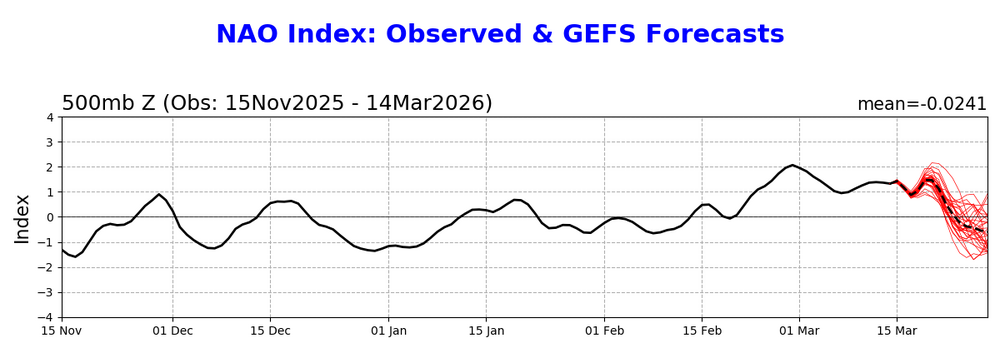 Thanks, Anthony. I hope they really timber! But the “timber” of the AO and NAO are still just to neutral. They were timbering to actual negatives starting around now that were shown 8 days ago per the images below vs today’s bringing them down to just neutral and not til early April: big diff.