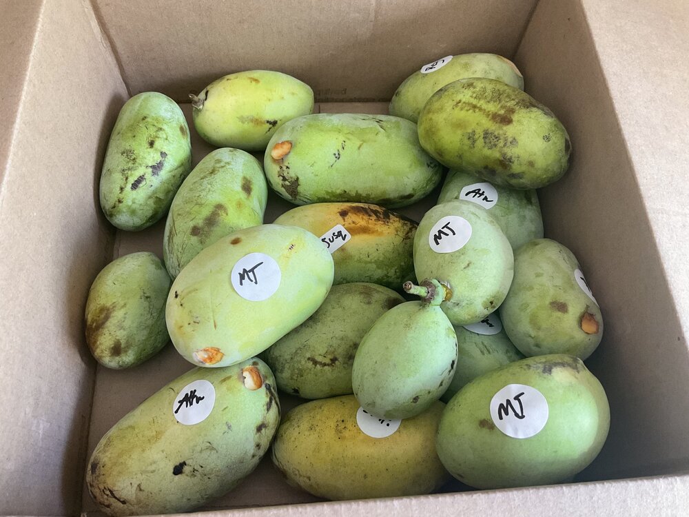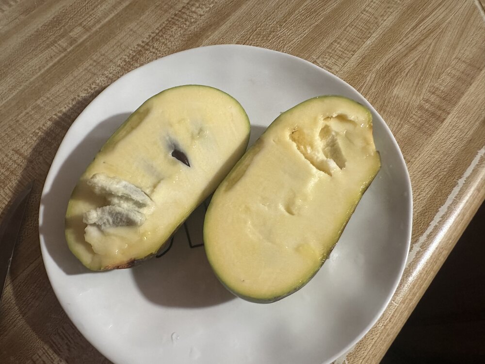 Pawpaw/asimina triloba I have about 40 different tree cultivars in the yard and another hundred seedlings growing in pots. They’re North America’s largest native fruit. They’re tropical in origin, but evolved to handle cold winters. There’s still a lot of tropical characteristics to the trees and fruit. They’re sort of their own taste, but some have hints of custardy banana, vanilla, melon, mango, or even coconut. There’s quite a few people growing them in New England now. Next season I’ll try to post some of the CT/MA/RI growers if anyone wants to try some. -