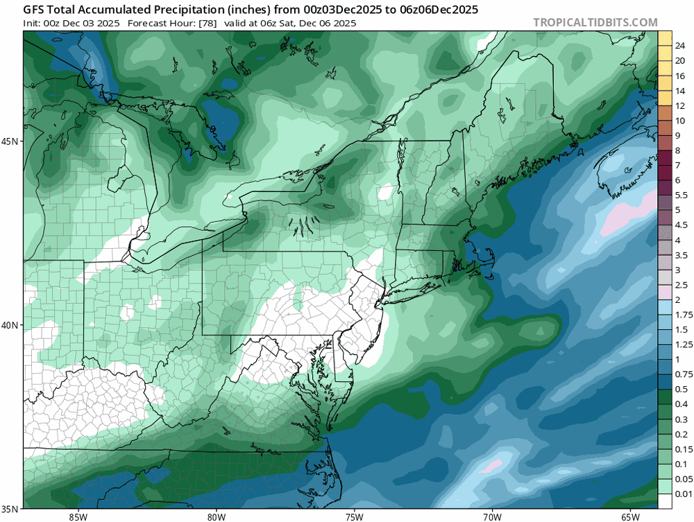 There’s a little stripe of vorticity along the m/d line that’s stayed pretty consistent on the models. Maybe that adds enough lift to get a coating here. That’s my bar. North shift is nice, but it’s gonna be finding some low dews. https://www.tropicaltidbits.com/analysis/models/?model=gfs®ion=neus&pkg=Td2m&runtime=2025120318&fh=42