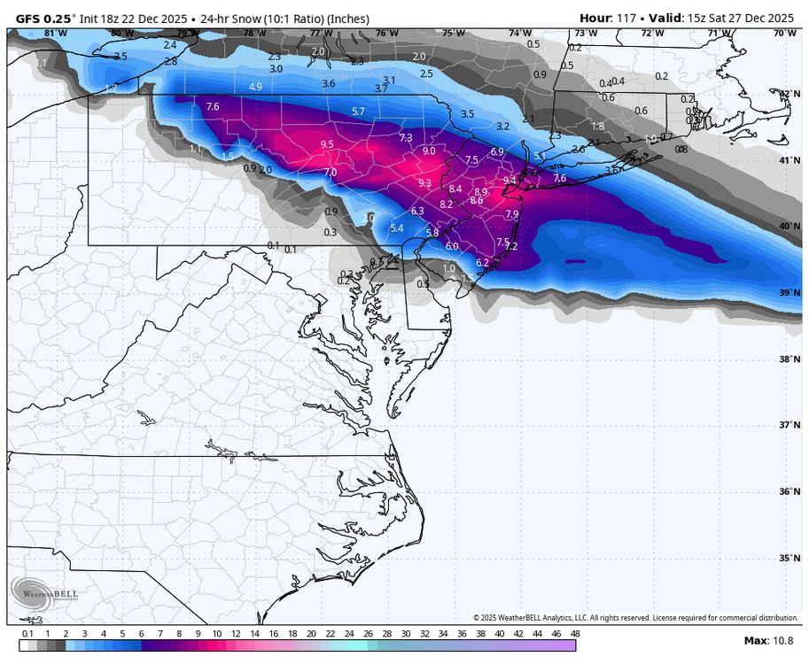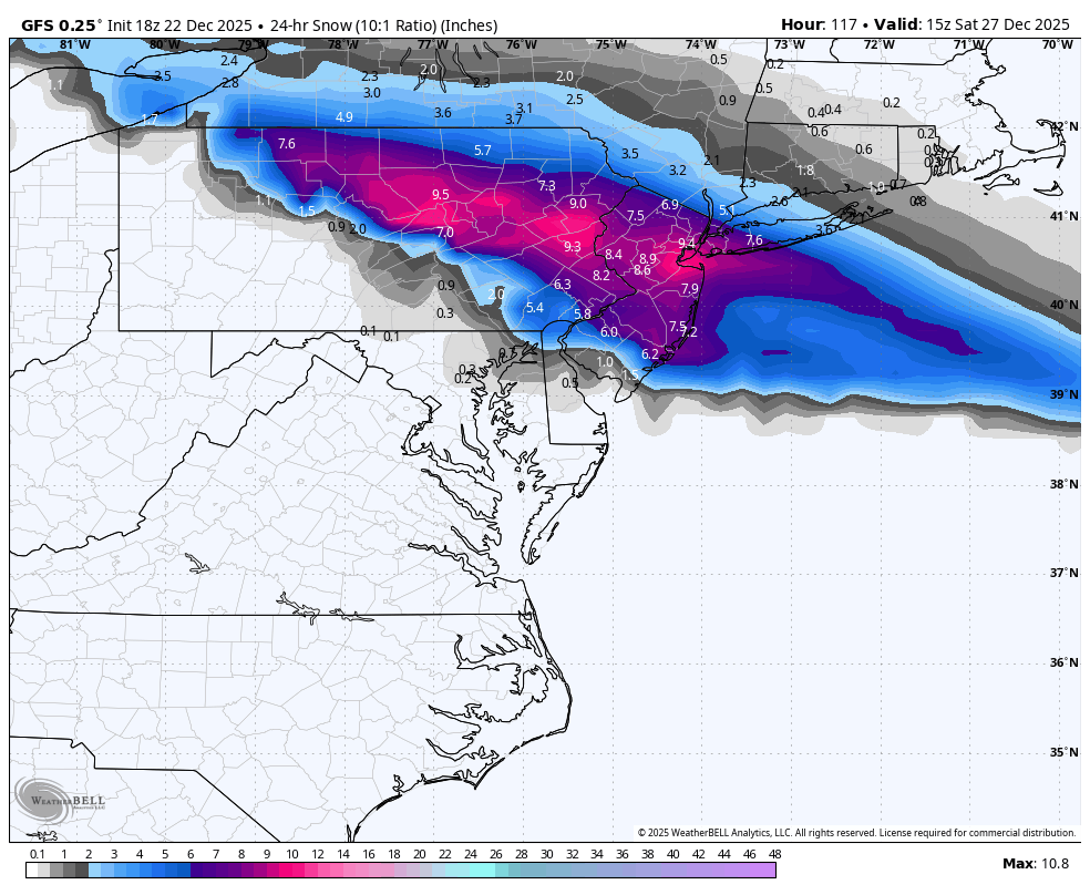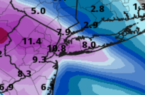 20. GFS looks great for the NYC metro! Get your snow shovels and salt ready again.