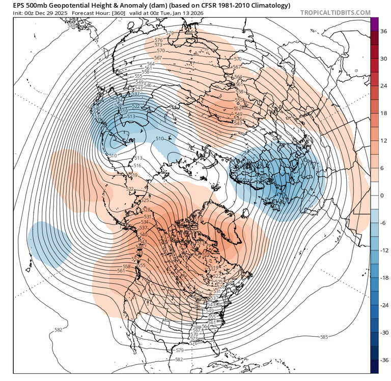 Yeah, exactly. Just looking at latest GEM it shows a big Storm but Thermals are marginal at best. Western US Ridge, Huge West based Gl Block but, big Thorn Vort over Alaska working in Tandem with the Gl HP in not allowing CAA into the States and pulling Canadian air to the Asian side. So, if enough cold could get in here under that monster -NAO ee would be in Business.