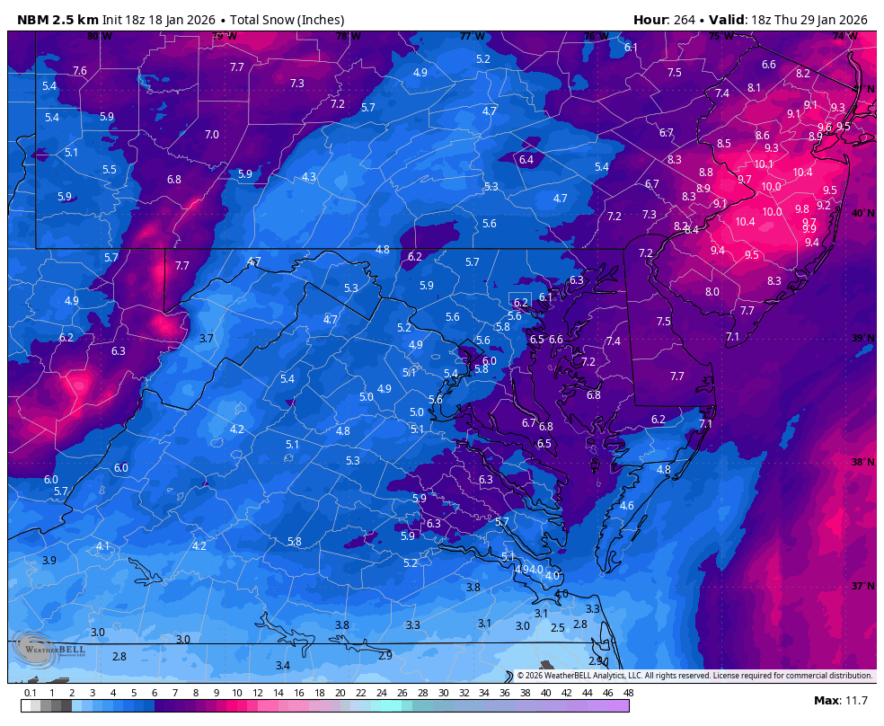 Nice setup for the storm potential in the 25-26th window, with a shortwave dropping southward over the western ridge and some of the energy in the southwest possibly getting involved. Big coastal storm potential here followed by another wave around Feb 1st. EPS advertising a very cold and active period upcoming.