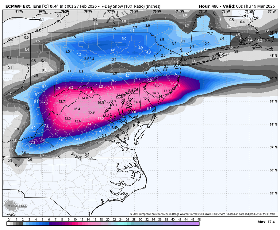 78F on 12z Euro for March 7th in DC. 72F 3-10 and 76F 3-11. -