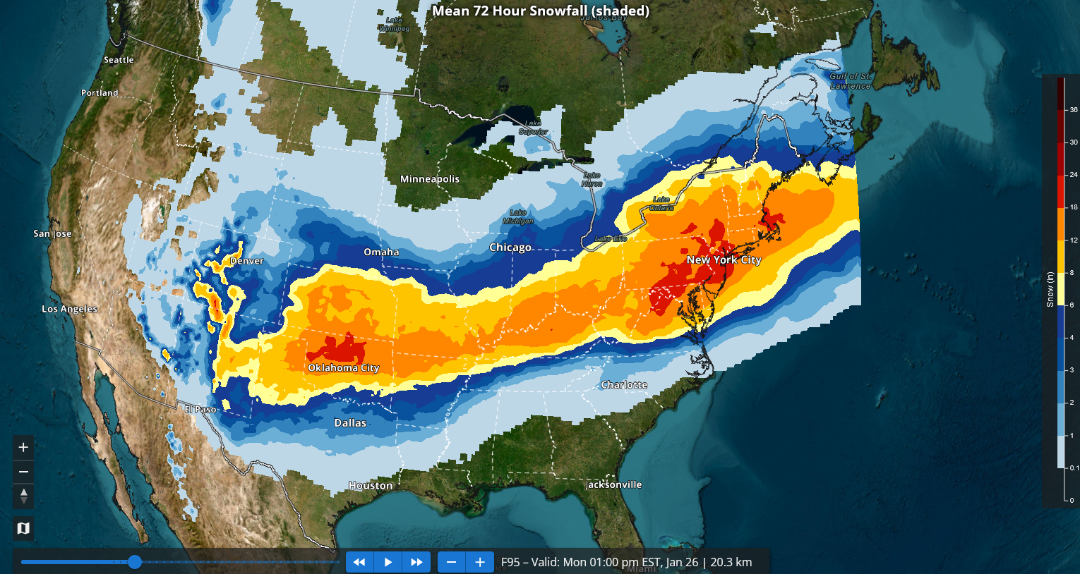 Although these maps sometimes overstate snowfall by a category, the below map illustrates just how expansive the impacts of the storm that will ultimately bring the Northeast its biggest snowfall in perhaps nearly five years will be. -