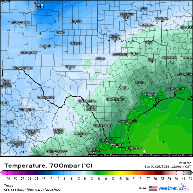 In Buda, Texas, Northerly breezes up to 37 mph have dropped temperatures 30 degrees down from our earlier highs in the mid 60s. At this rate we will be subfreezing by 7am. Rain will be freezing on every surface down here. It will then proceed to drop all day Saturday, into the teens Saturday night with persistent ZR. This storm may end as snow here Sunday. Next weekend another storm and trough will bring yet another round of rain, ZR, sleet and even snow to Austin Texas. Is this Texas or Northern Virginia? -