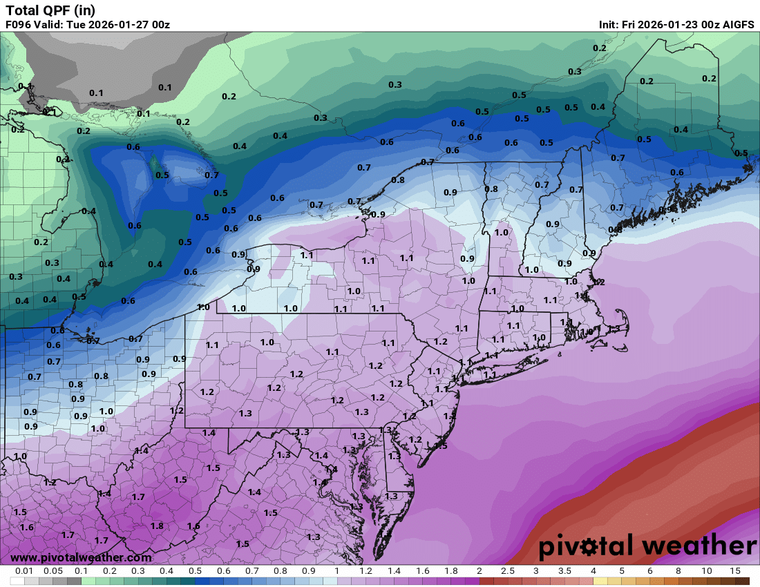 8. GFS did get a tad NW with the snow/sleet line compared to its 18z run, getting into a portion of Lancaster and maybe extreme southern York. Still a plenty big enough hit for everyone. Top end down a slight bit area-wide, basically 18-19” (Kuchera) for everyone.