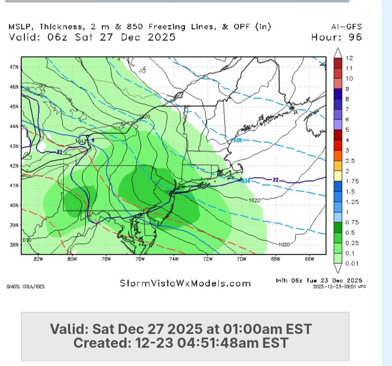 Possibly the northern mountains but at this time the cold front looks dry. Unless your into skiing then somewhere like Beech mountain. But at this time the models aren't showing any winter weather around New Years.