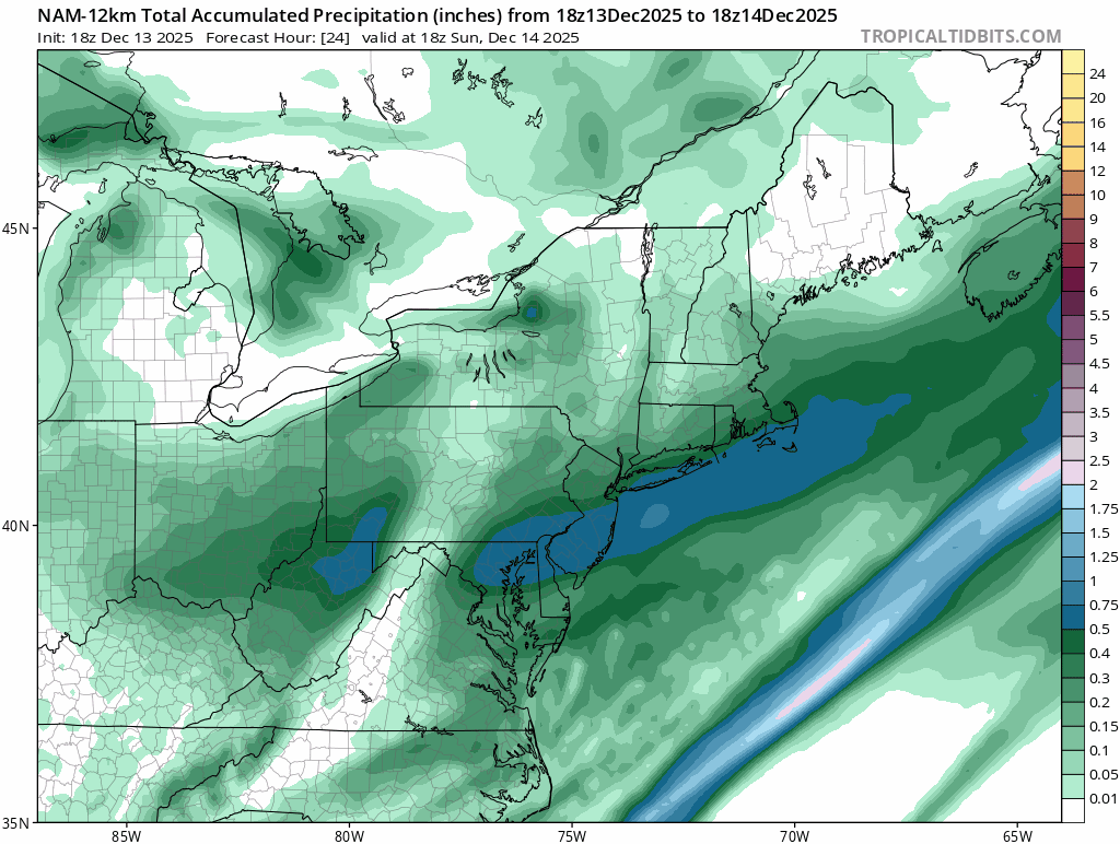 Yeah usually you don’t want a storm to move in later because the later it moves in, you always lose some QPF. Nothing but flurries in NYC. Accumulating snow to the east and west though. -