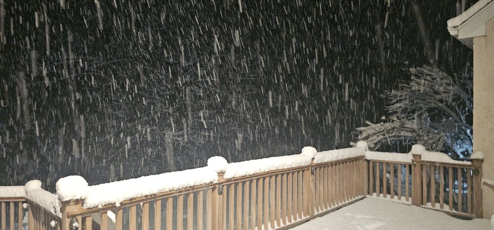 Getting better rates and bigger flakes now. Temp down to 29.8 degrees. -