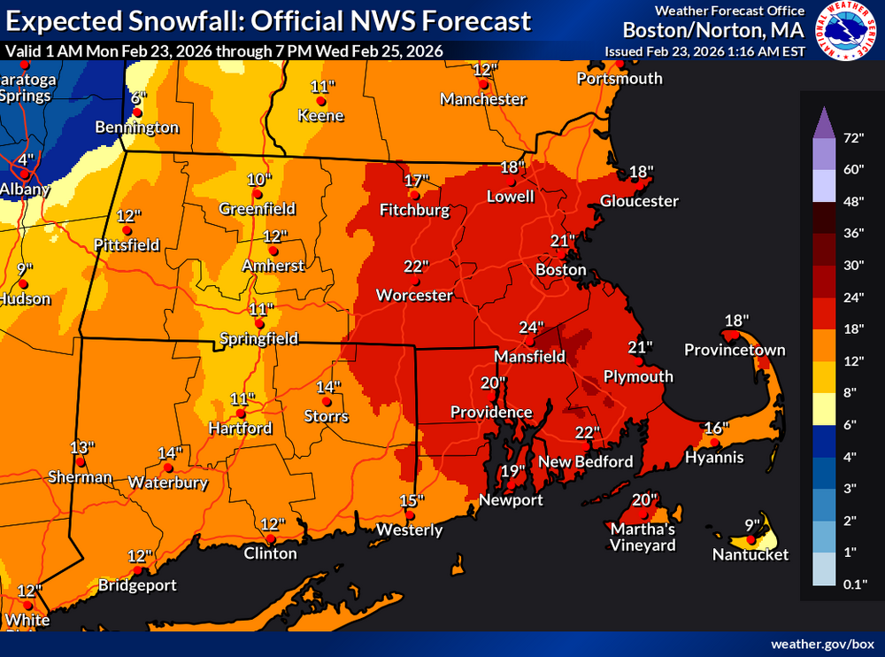 PVD is in the process of destroying its 1978 record. So far, it has seen 32.8" and it continues to snow heavily.