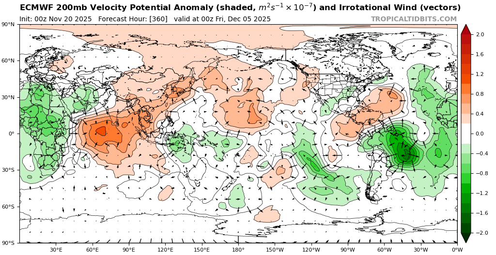 The RMM charts are only providing part of the picture. They are following the convection to the east of the Dateline. But we still have convection lingering near the Maritime Continent into early December. So it’s more of a split forcing pattern rather than a canonical MJO driven pattern.