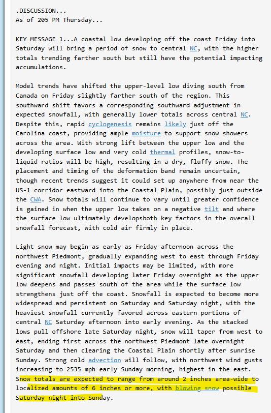 Ya’ll, I absolutely love when GSP talks like this There has also been a signal for a "dry slot" between snow bands in the general vicinity of northeast Georgia, although where this occurs is still uncertain - but even there warning criteria snow should still be realized. The ceiling is high with this event and a swath of 8-12"+ totals cannot be ruled out where the greatest banding is able to set up shop. -