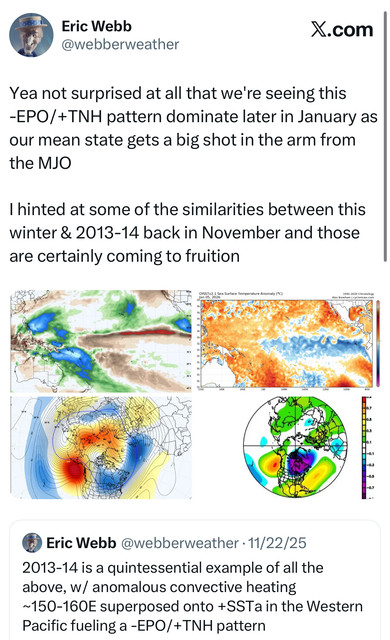Depending how cold the 2nd half of January is, I think we still have a good shot at geing colder than avg. Departure at DTW thru 1/5 is -4.8°. Mild weather will naje that a positive Departure but I doubt +5 or 6 by the time we turn cold -
