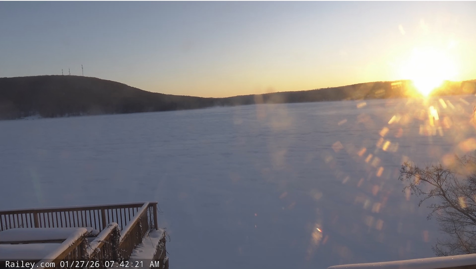 Captured this screenshot of the sun rising over Deep Creek Lake this morning from Railey Realty’s website. Low of -3 there.