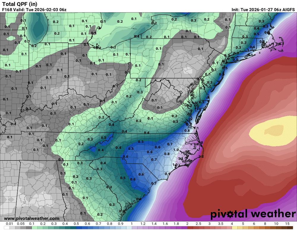 Did anyone mention the AI GFS? It trended much more west and NW with QPF. Taken verbatim it would be a big hit -