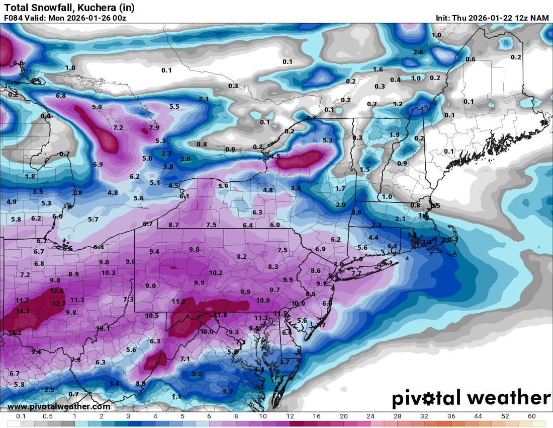 ICON with a nasty gradient north of NYC. 6" for JFK with 2' in Orange and Putnam. -