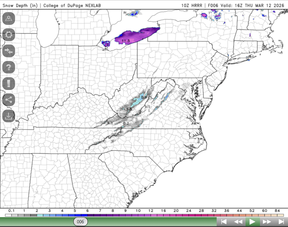 It will be interesting to see how this weak wave on the stalling front plays out today. Radar over the past hour appears to be stalling & building a bit in western MD & eastern WV, down through the spine of the southern Appalachians. Maybe the LSV gets a good period of wet snow later on? -