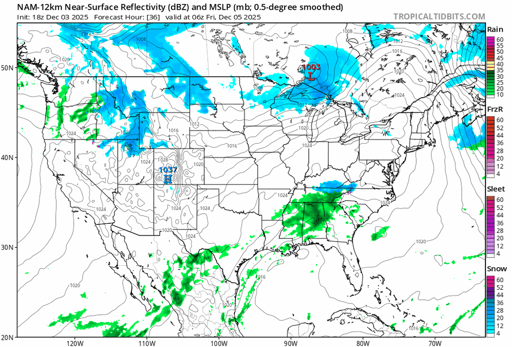 The rain/snow line on the 00Z HRRR is pretty much identical to 18Z. The main difference is that it reduced totals by half in NC. At least for the triangle, this has all the makings of some initial sleet/snow falling for a short period of time (if that) and then quickly going to all cold rain.