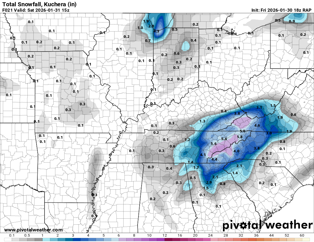 New update: Winter Storm Warning URGENT - WINTER WEATHER MESSAGE National Weather Service Morristown TN 1248 PM EST Fri Jan 30 2026 TNZ014-015-037>039-068>071-073-086-VAZ001-310915- /O.CON.KMRX.WS.W.0003.260130T1800Z-260201T0600Z/ Claiborne-Hancock-Union-Grainger-Hamblen-Loudon-Knox-Jefferson- Northwest Blount-North Sevier-Northwest Monroe-Lee- Including the cities of Lenoir City, Maynardville, Luttrell, Morristown, Arthur, Happy Valley, Pigeon Forge, Springdale, Evanston, Sharps Chapel, Seymour, Sneedville, Treadway, Knoxville, Bullet Creek, White Pine, Bean Station, Kyles Ford, Lake Forest, Strawberry Plains, Chestnut Hill, Rose Hill, Russellville, McMahan, Madisonville, Bearden, Jefferson City, Dandridge, Kodak, Harrisburg, Sevierville, Alpha, Harrogate-Shawanee, Loudon, Clairfield, Lone Mountain, Paulette, Sweetwater, Sandlick, Norris Lake, Alcoa, Maryville, and Howard Quarter 1248 PM EST Fri Jan 30 2026 ...WINTER STORM WARNING REMAINS IN EFFECT UNTIL 1 AM EST SUNDAY... * WHAT...Heavy snow expected. Total snow accumulations between 3 to 9 inches. Winds gusting as high as 35 mph. * WHERE...3 to 6 inches of snow are expected between Lee County VA and south toward the I-40 corridor in TN. 4 to 7 inches along the I-40 corridor and south toward the foothills of the east TN mountains. Locally higher amounts up to 9 inches across the foothills of the east TN mountains. * WHEN...Until 1 AM EST Sunday. * IMPACTS...Travel could become difficult by this evening. Hazardous travel conditions are expected overnight into Saturday. PRECAUTIONARY/PREPAREDNESS ACTIONS... If you must travel, keep an extra flashlight, food, and water in your vehicle in case of an emergency. The latest road conditions for the state you are calling from can be obtained by calling 5 1 1. && $$