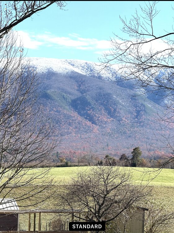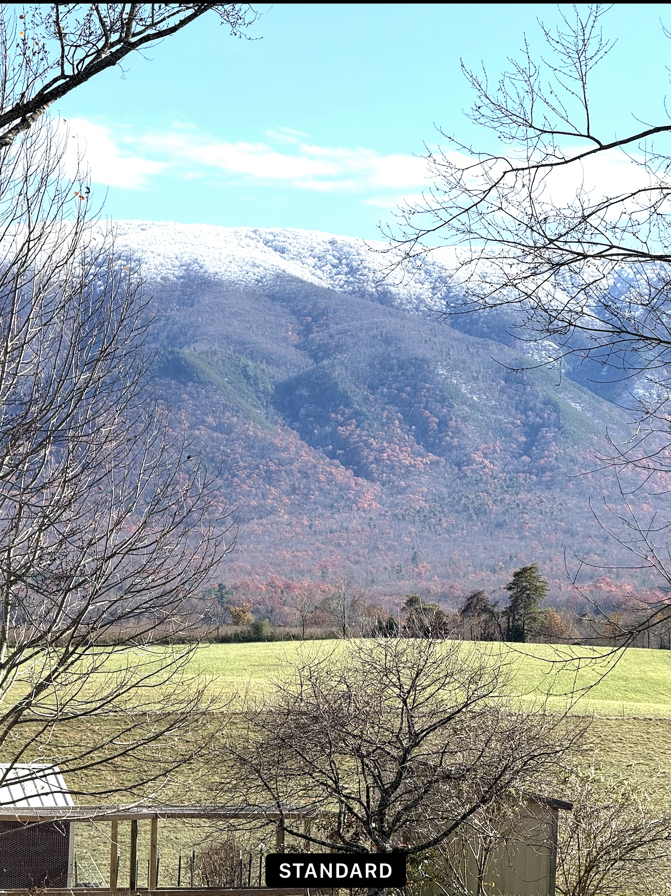 I was working in Camp Creek earlier today and took this picture around 2PM. It’s winter meets Fall! Still some color down low and color up top!