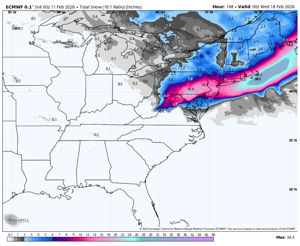 Just when it looked like all hope was lost, the Euro comes in with a significant storm for Sunday night. Widespread 12-16” of snow north and west of Philly. -