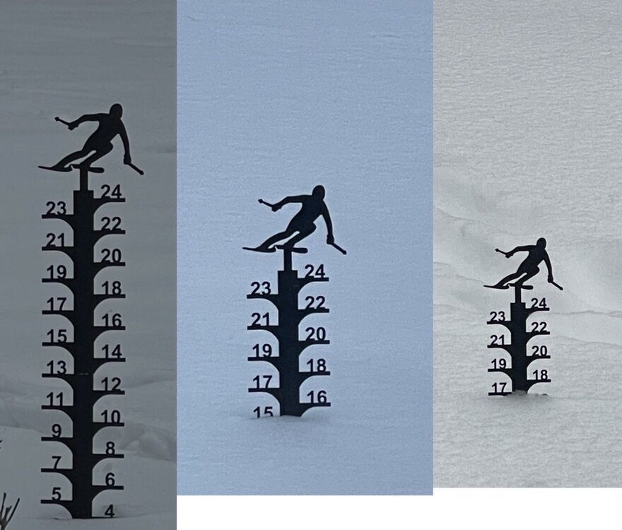 Just finished driveway round two and done. Still using only a hammer and snow shovel lol. I was actually impressed at how handy the hammer was with busting up or slicing away/removing the ice crust. Lighter and easier for me than jabbing at it with a metal shovel. After my labors I tested out the snowpack. Broke through occasionally but was mostly able to walk on top! Instant being a kid again!! This is after a high of 26 and sun, it can only get better. 110 lbs tops ymmv.