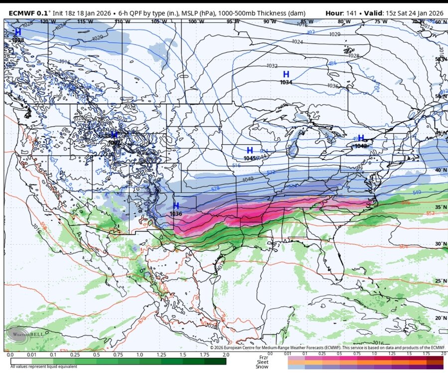 The 18Z Euro over SE AR and N MS its like 1 inch of freezing rain in 6 hours