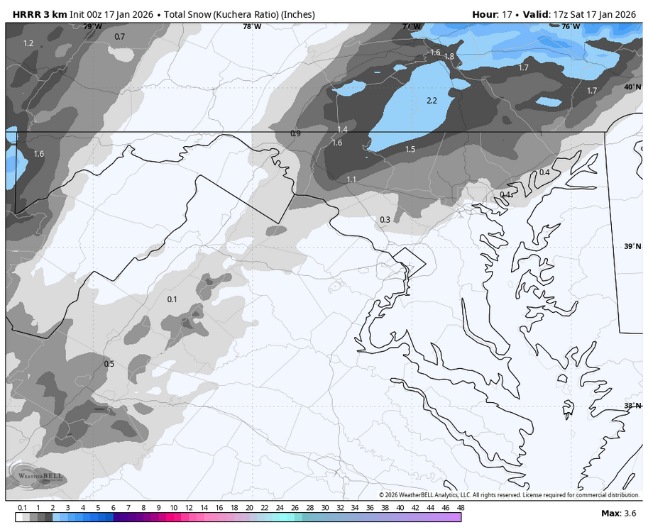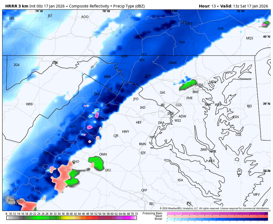 Don’t believe it for a second bc it’s weenie range but hrrr is way NW , gets accumulating snow to 91 for Sunday -