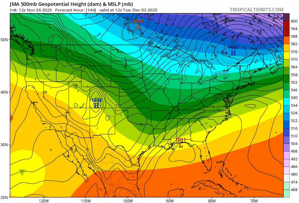 Only positive out of this rainstorm next week is with an active pattern more cold enough air will be dragged in behind it since the GFS is leading the way in this pattern December 7 it produces this