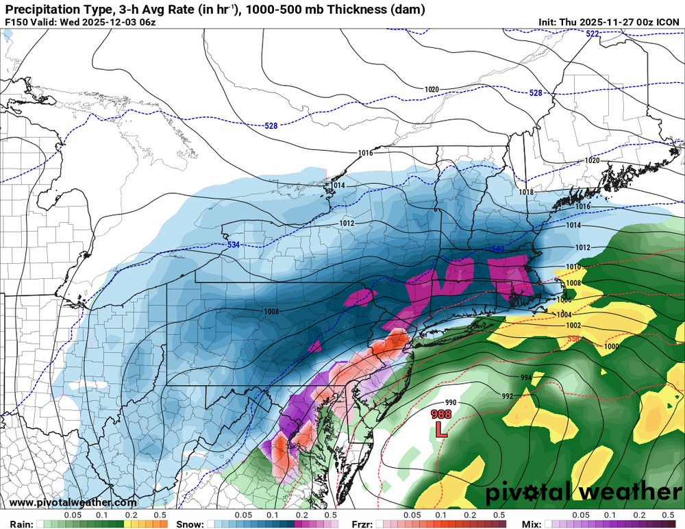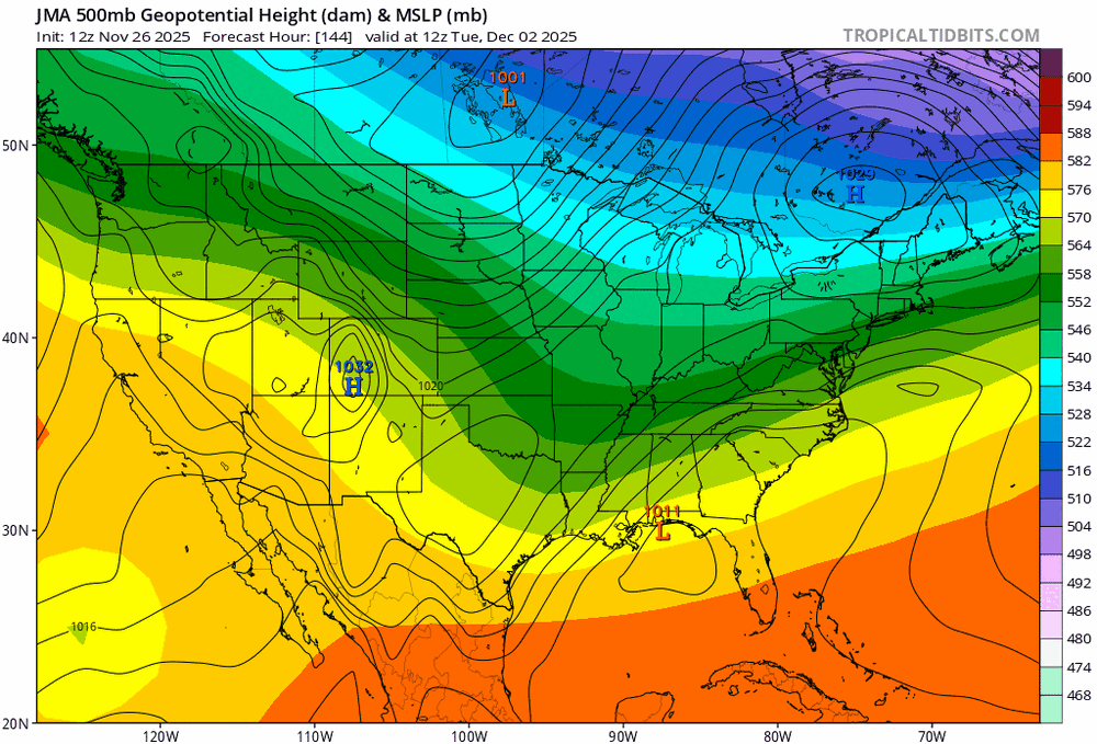 Even with a demamp'd storm, notice how 'warm' it is. The writing is on the wall with this one. Flat flow we walk the tightrope, amped up it pumps in too much warmth. Fall line and east are toast. On to the Dec 6 system.