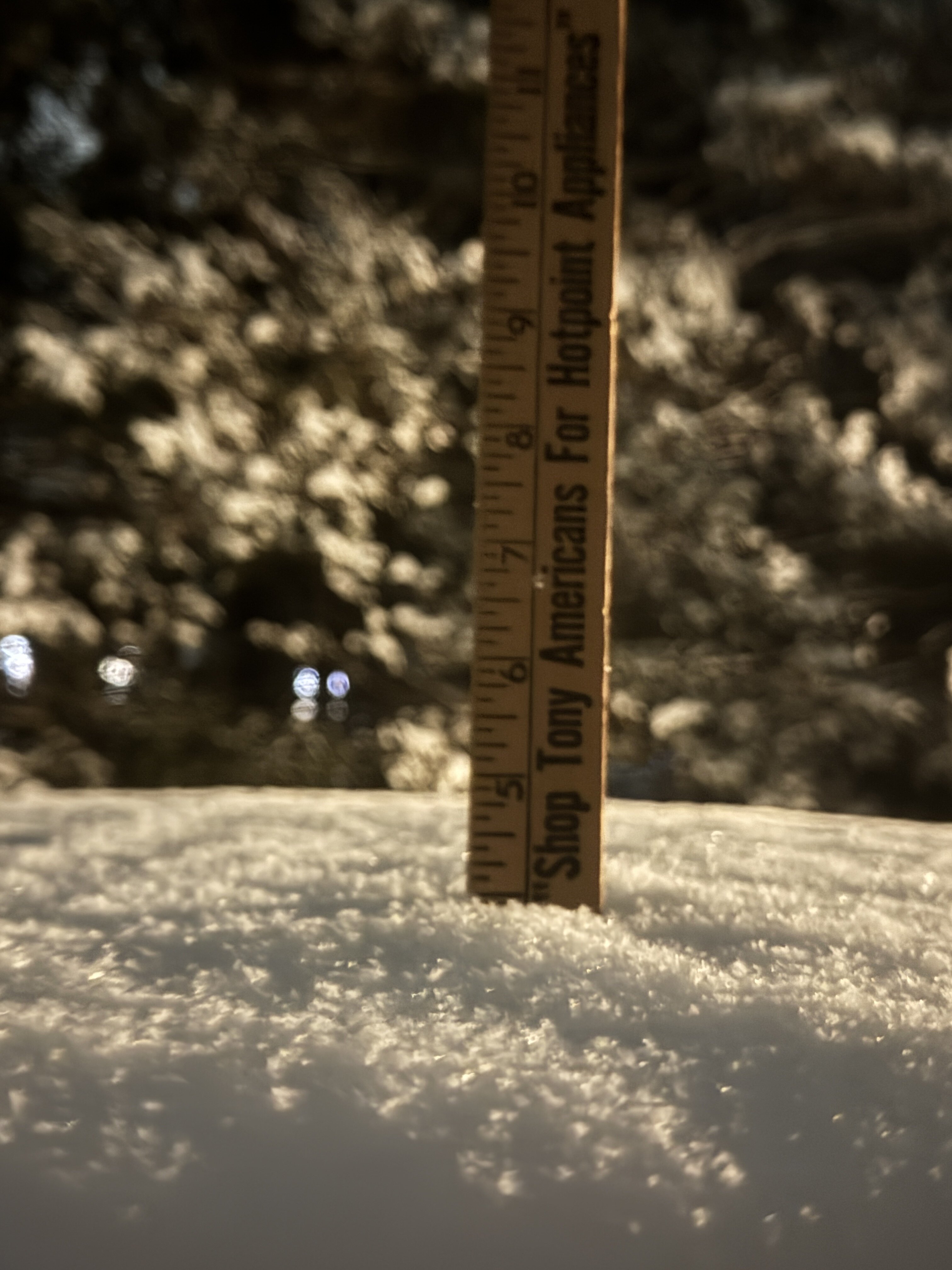 Exactly 4 great call @HoarfrostHubb Light snow continues..pure fluff and super easy to shovel - Today