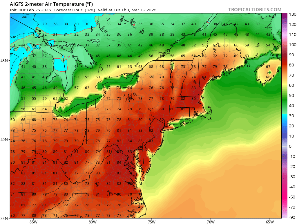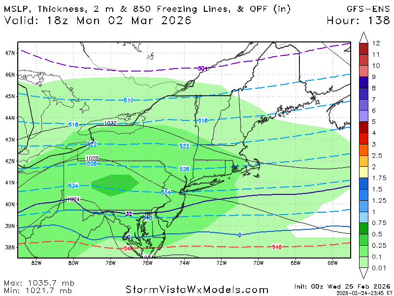 Central and northern PA at 2'+. Wonder if the Gfs is treating them like it treated us with its early runs for this past weekend. Love to see that come 100 miles south. -