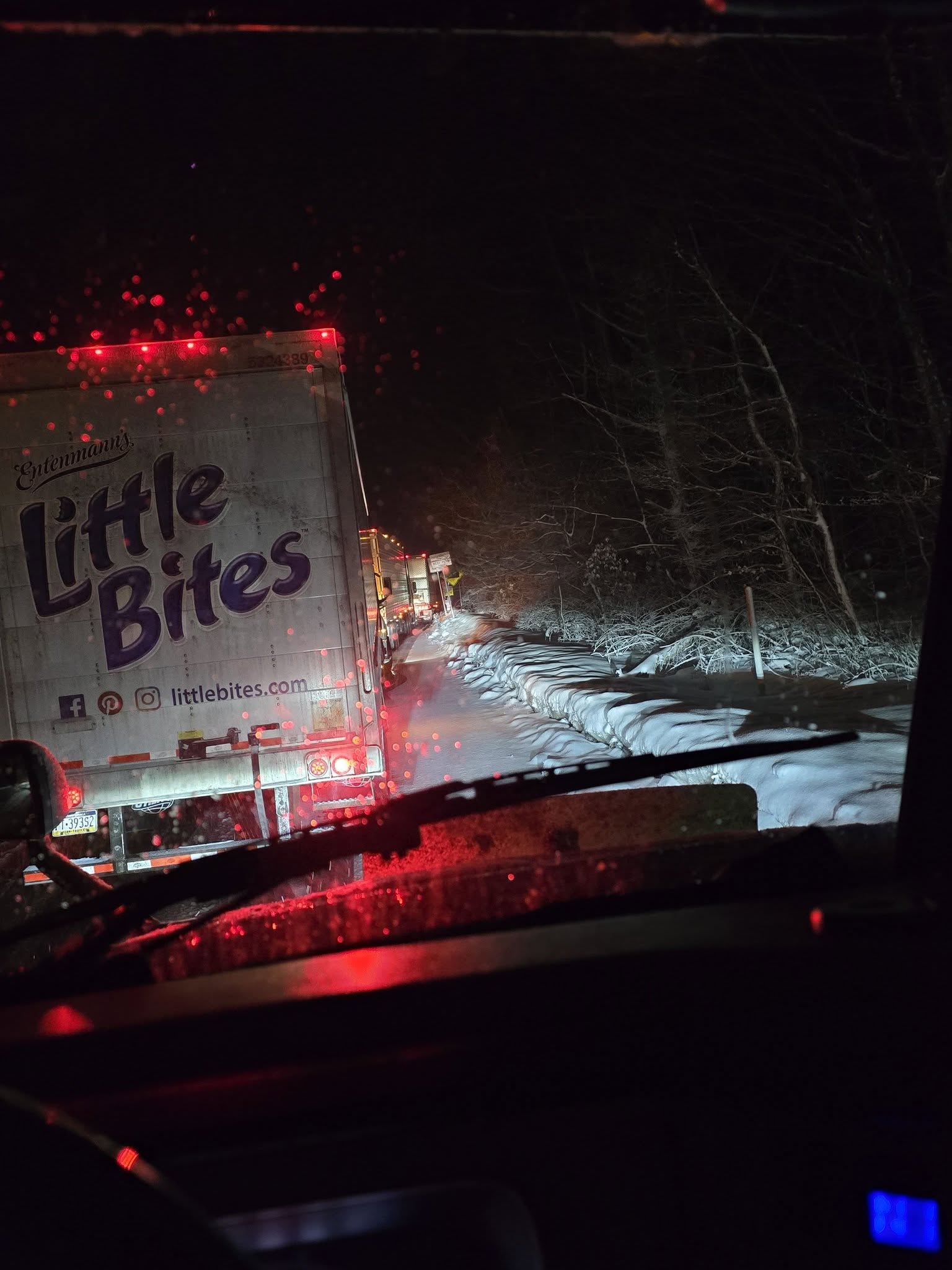 My night shift truck partner sent me this. She was stuck sitting on PA309 over the Blue Mountain. The road was closed for some time due to a wreck and stuck trucks. -