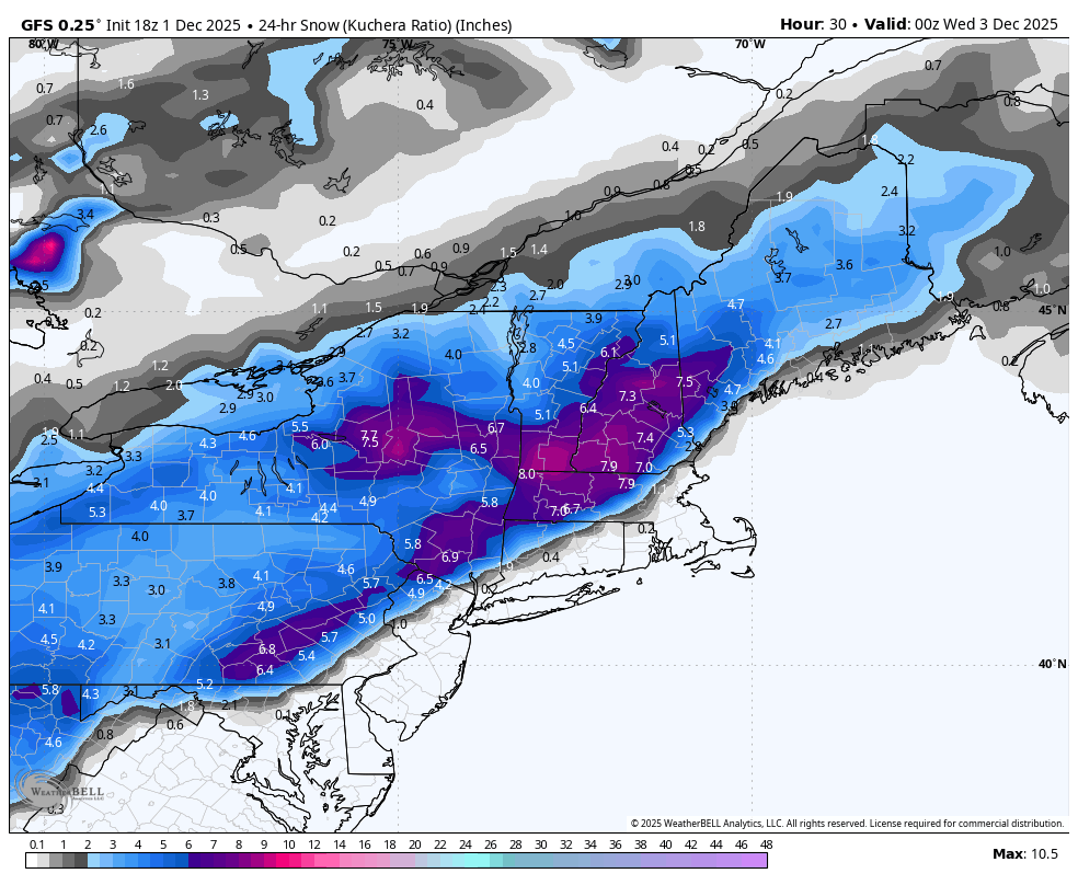 I didn't realize several people were talking about Harford when I said this was off topic Good luck to those in the game for a bit o' snow. I'll be on first flake watch.