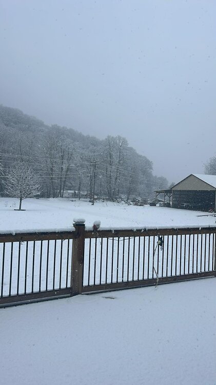 Somewhere between 1 and 2 OTG at 9 am, still a moderate snow, but flakes are dimes instead of the quarters falling earlier. 31.5/30.1. The high end maps from Blacksburg NWS are LOL!