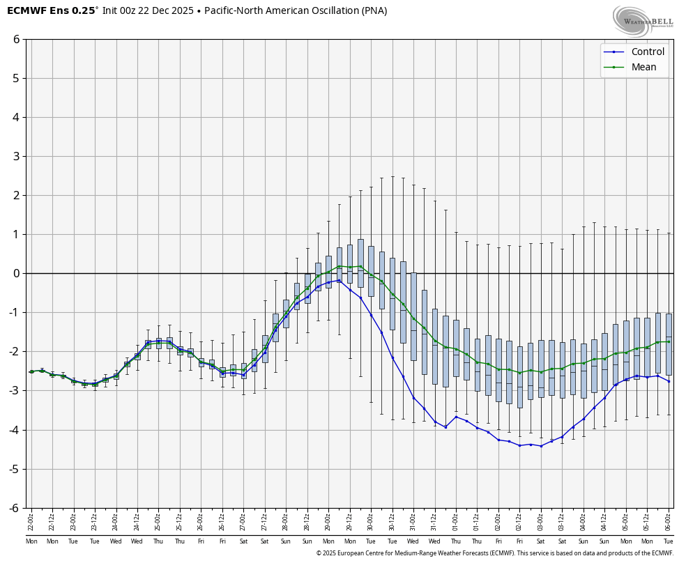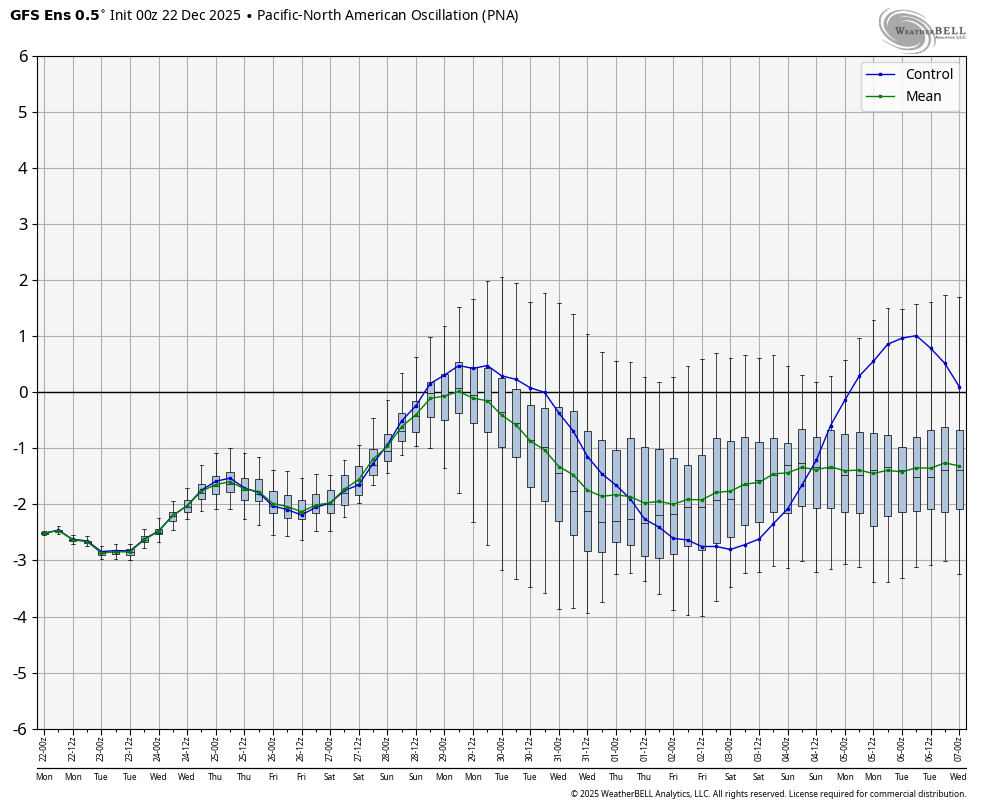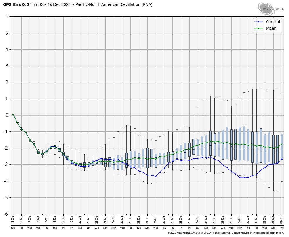 Look at how much the PNA has risen for a week from now: From ~-2 as of 2 weeks out GEFS: EPS: To ~0 one week out: GEFS: EPS: