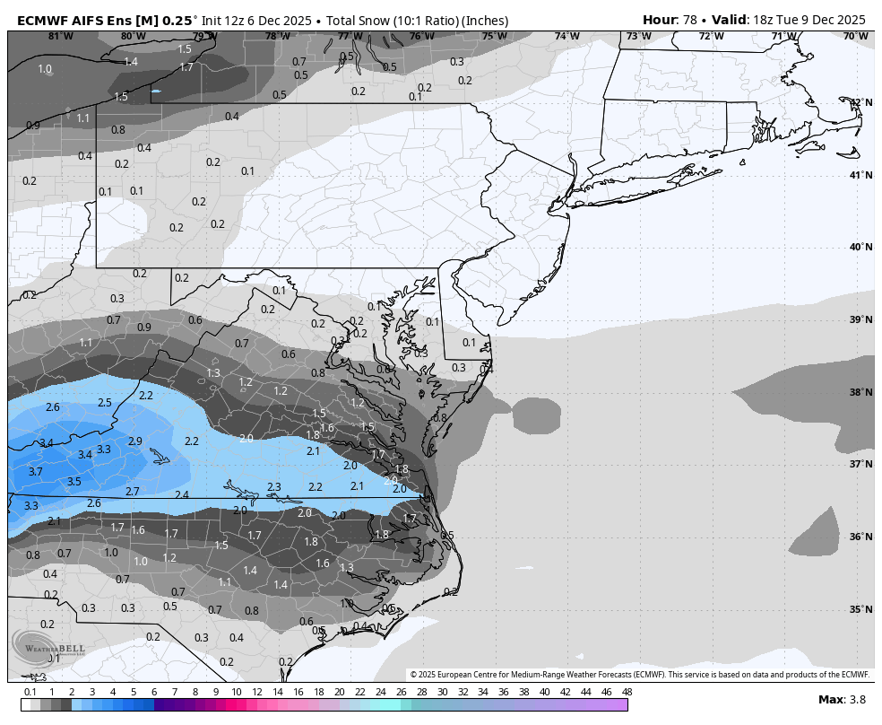 I like the Euro AIFS ens. Tuesday was wacky but it performed very well on Friday. I can handle 1.5" and be happy.