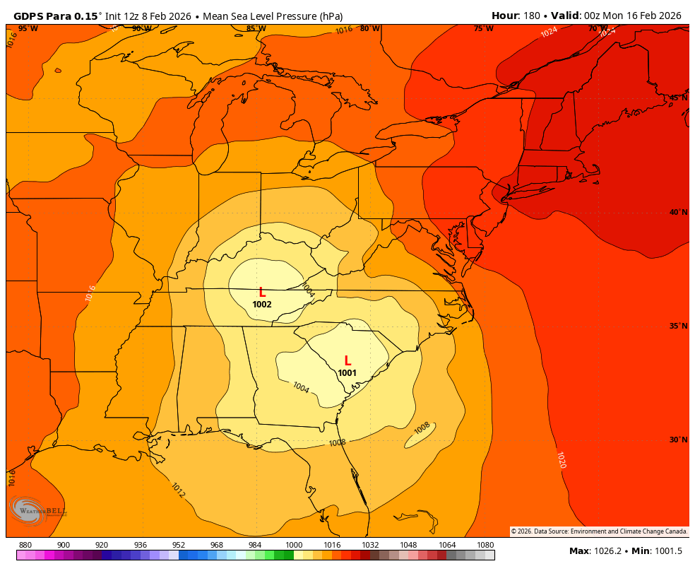 12z Euro tries to run a sub-990 low across the heart of an eroding CAD, I would take the OPs with a grain of salt at this point. Mainly focus on what the ensembles are showing at this range. It only shifted the low 500 mi since last night, so hard to take serious at this point. Also moves the High from Erie to Norfolk in 6 hrs, I don't really buy that solution. This storm will all come down to timing, and that's not going to be figured out for a few more days.