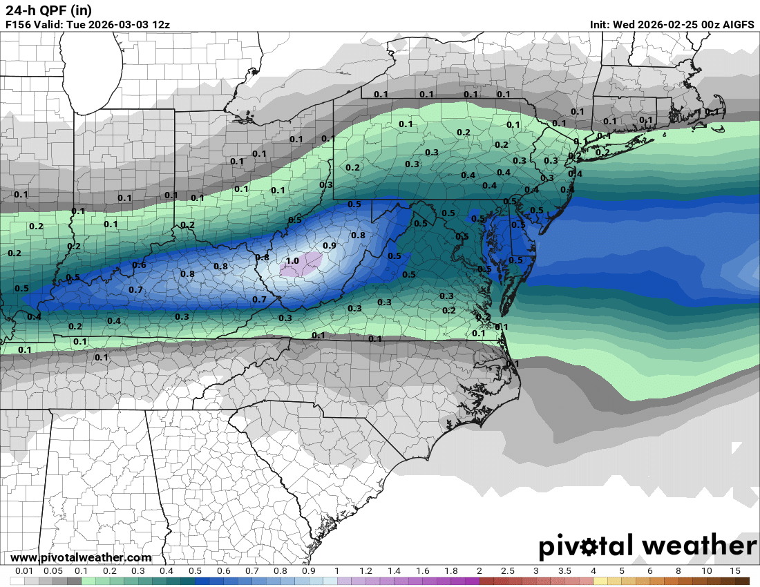 5. 0z AIGFS a moderate hit, but total qpf for it hasn't updated yet. Part 2 is weaker and likely has temp issues.